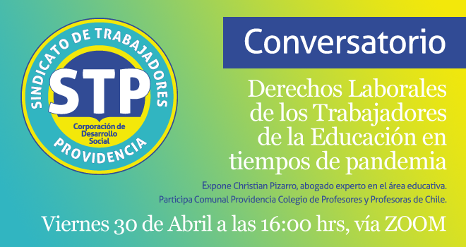 Además, queremos invitarte a conmemorar a una actividad organizada por el Sindicato de trabajadores de Providencia: «Conversatorio sobre derechos laborales de los trabajadores de la educación en tiempos de pandemia» ,en el que se considerarán aspectos relativos al estatuto docente y al estatuto de asistentes de la educación.