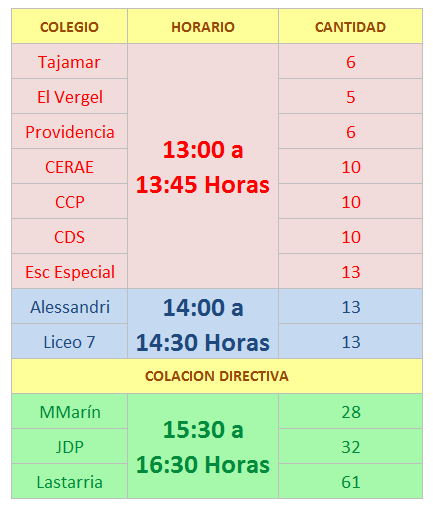• JUEVES 3 DE DICIEMBRE se entregarán cheques de préstamos, beneficios y bono a los asistentes de la educación de acuerdo a la siguiente tabla. (se atenderá por orden de llegada en el horario asignado)