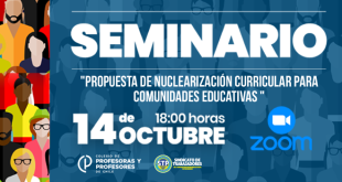 Organizado por Sindicato de Trabajadores de Providencia Invitamos a todos(as) docentes al Seminario “Propuestas de nuclearización curricular para comunidades educativas”. Este evento se realizará vía ZOOM el día jueves 14 de octubre a las 18:00 horas y contará con los siguientes exponentes: Sr. Carlos Ojeda Murillo Dirigente Nacional del Colegio de Profesoras y Profesores de …