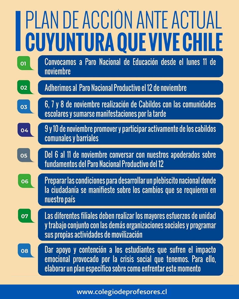 Compartimos con todas nuestras socias y socios el Plan de Acción organizado y promovido por el Colegio de Profesores para los próximos días.