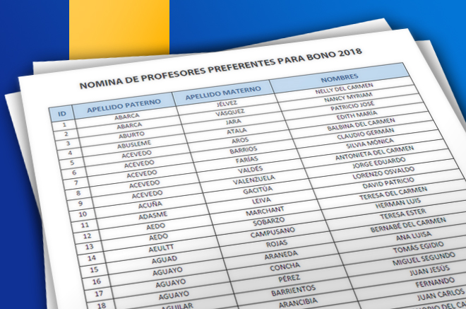 Compartimos con nuestras socias y socios, la nómina de profesores preferentes para bono 2018. Para ver, consultar y descargar, presione el siguiente botón: