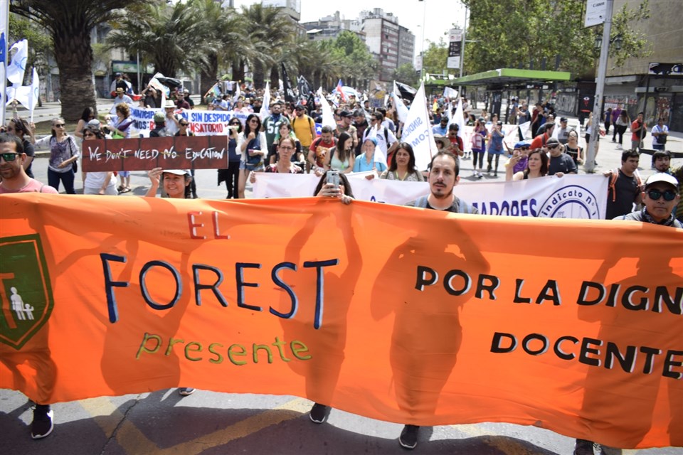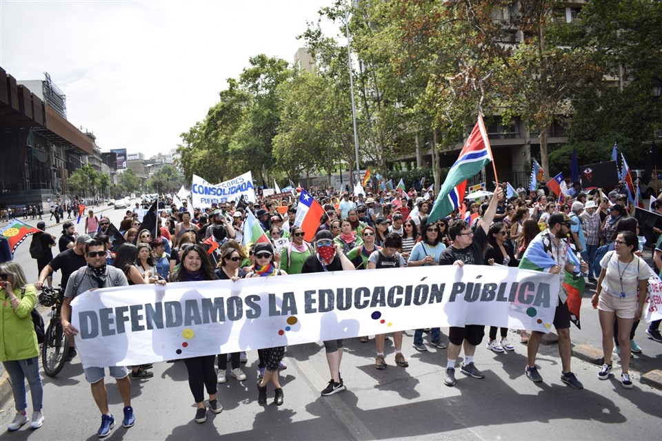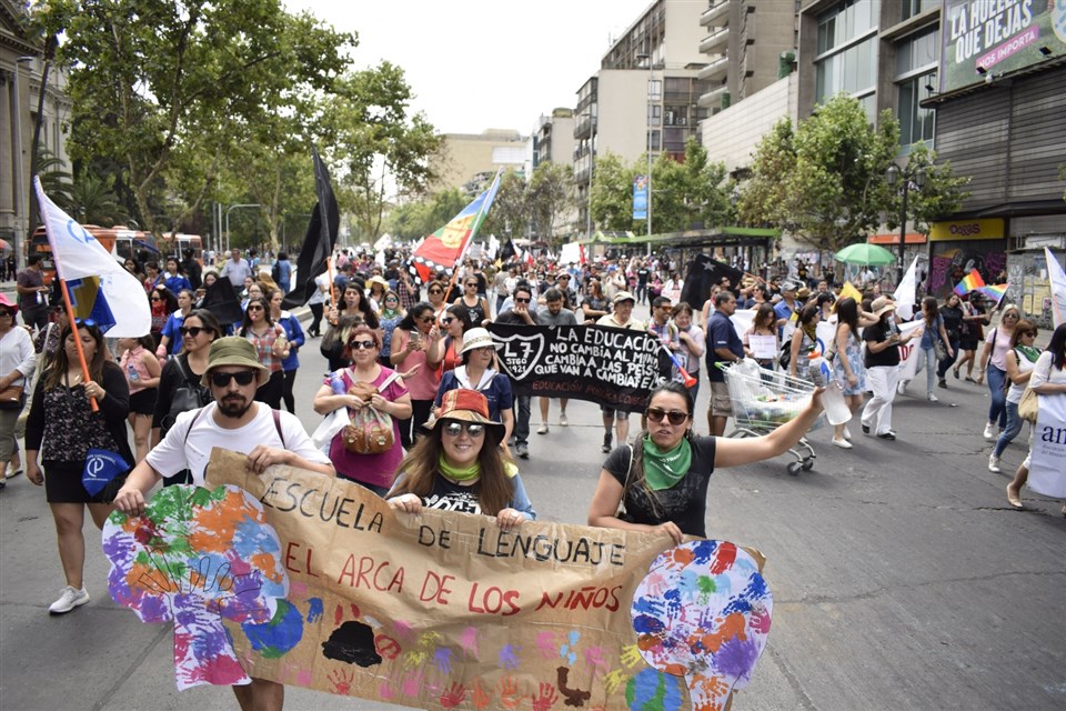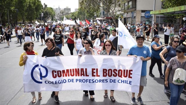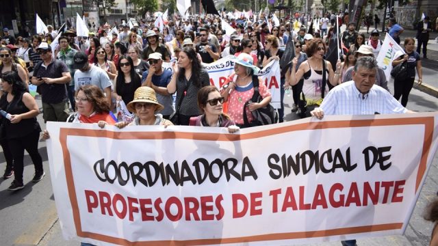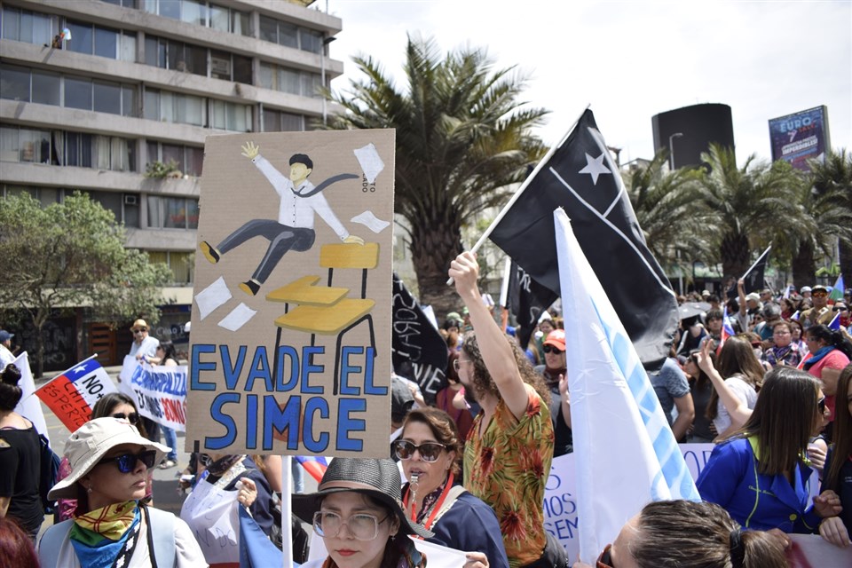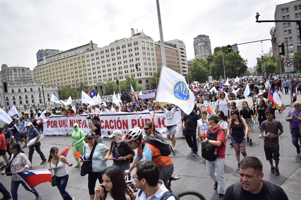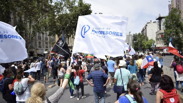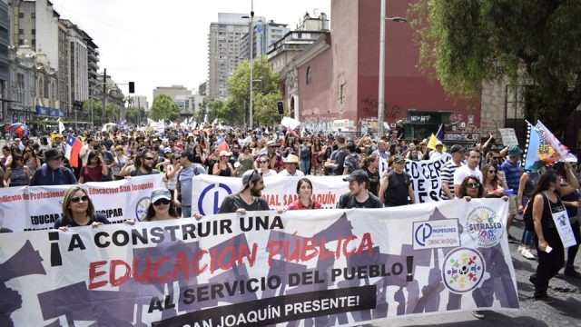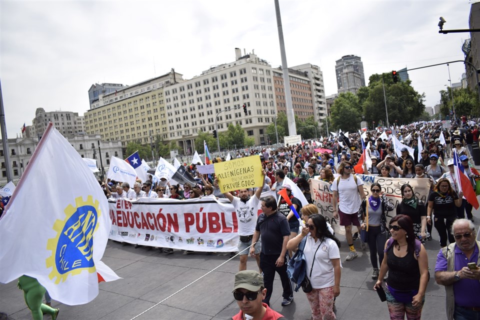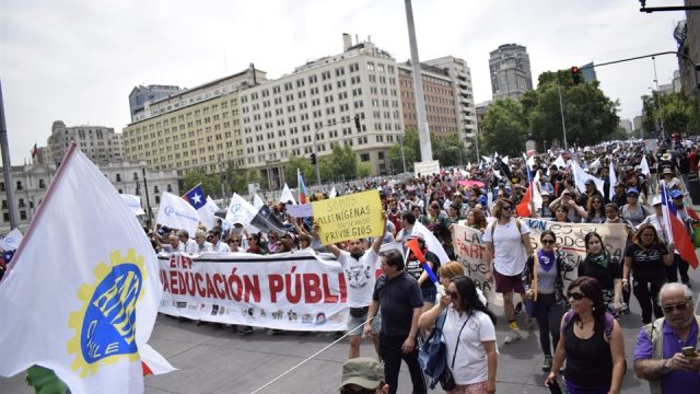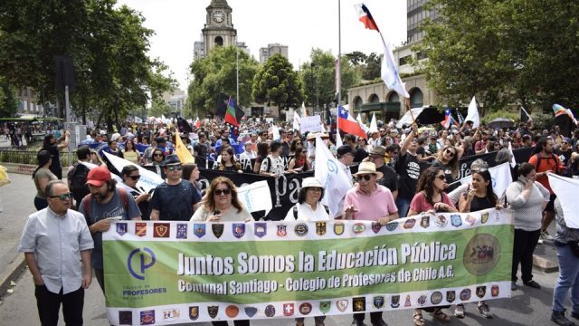 Miles de profesores y empleados públicos coparon la principal avenida de la capital en rechazo a la aplicación de pruebas estandarizadas en la educación y en demanda de los cambios sociales profundos que exige la ciudadanía movilizada en todo el país.