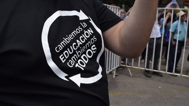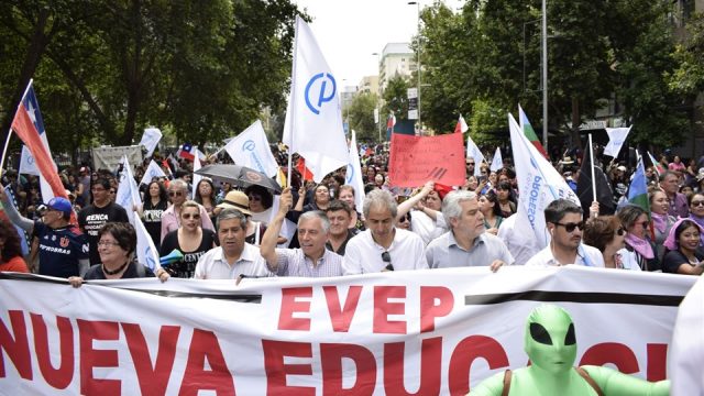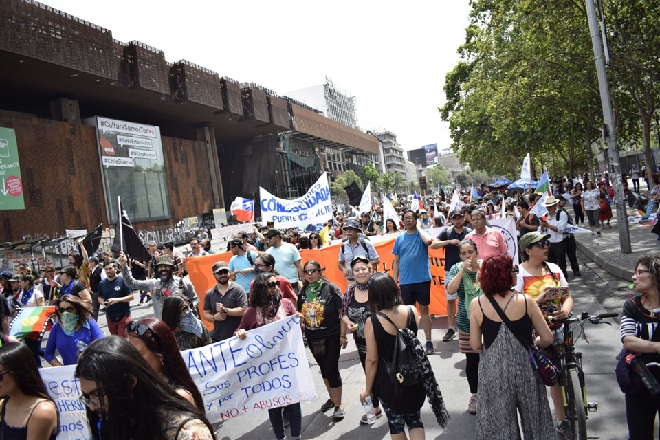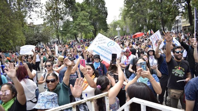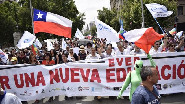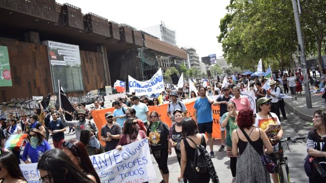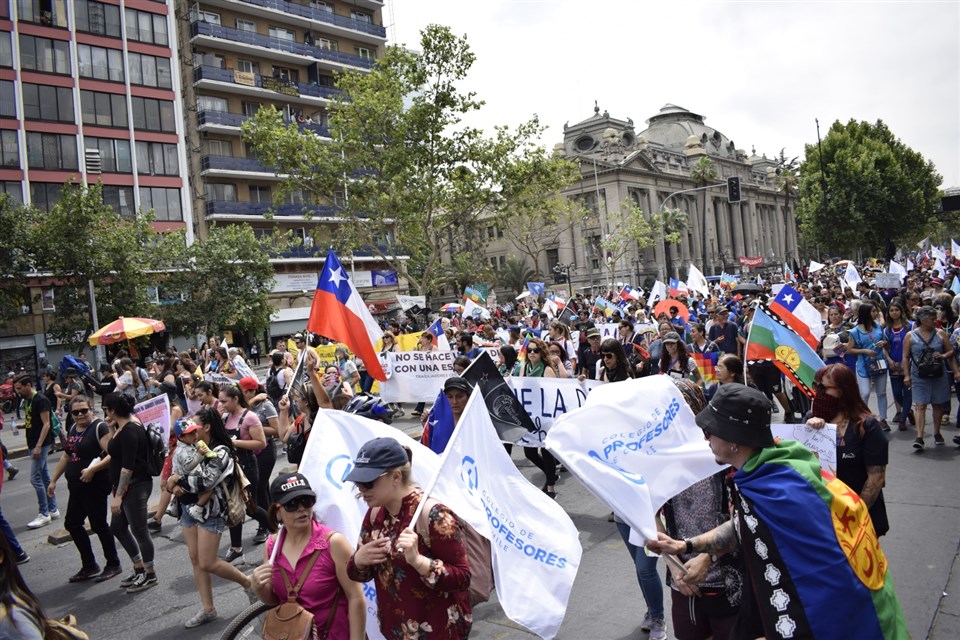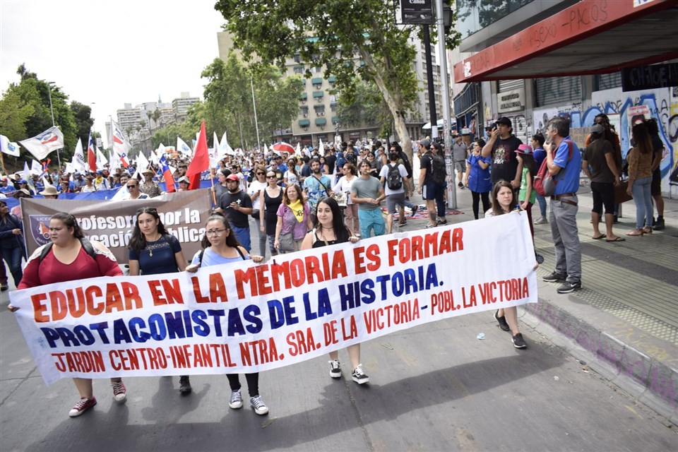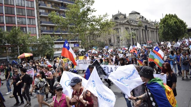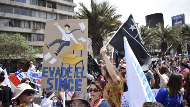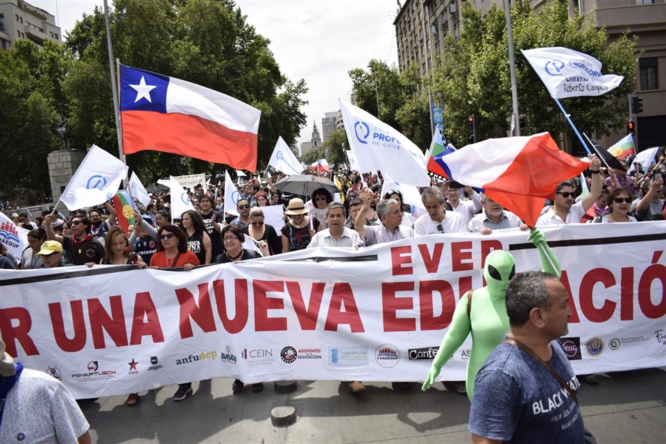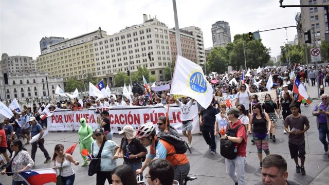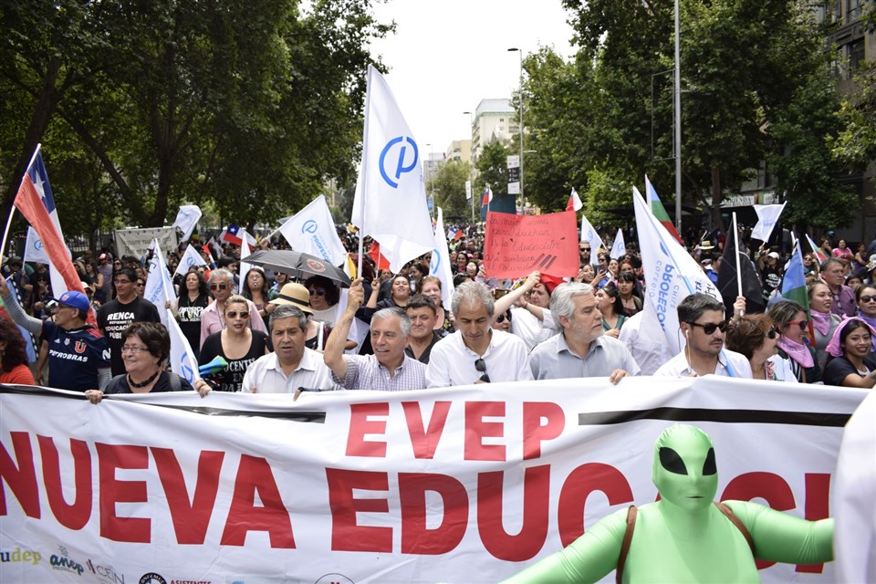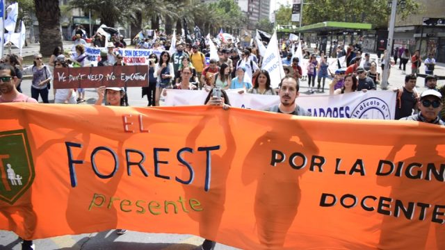 Miles de profesores y empleados públicos coparon la principal avenida de la capital en rechazo a la aplicación de pruebas estandarizadas en la educación y en demanda de los cambios sociales profundos que exige la ciudadanía movilizada en todo el país.