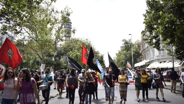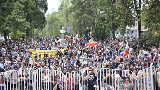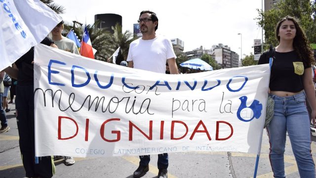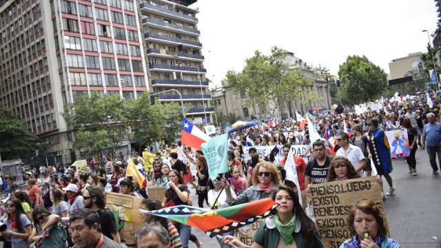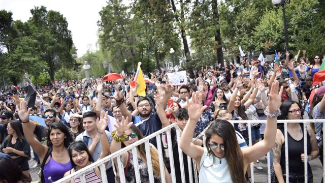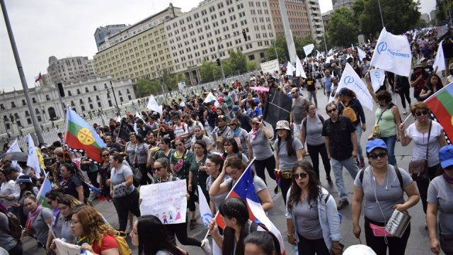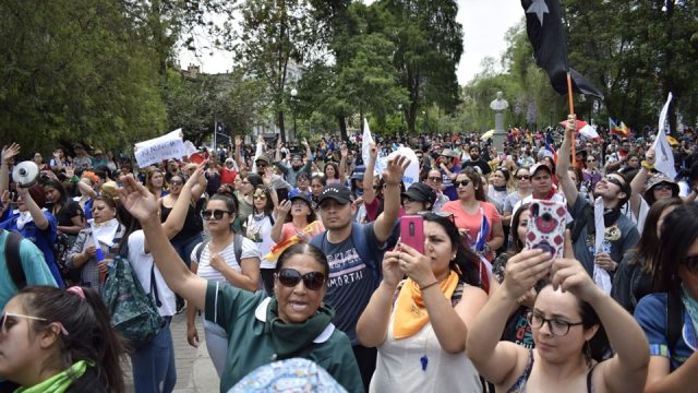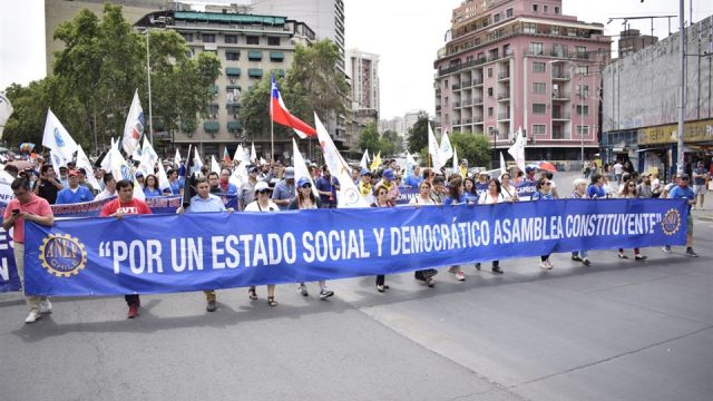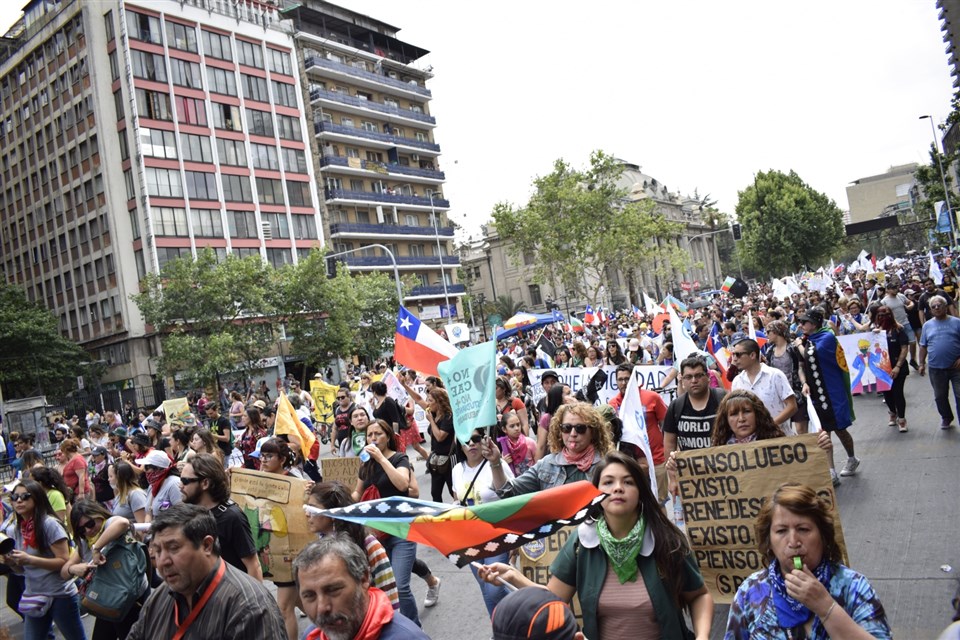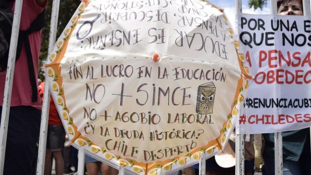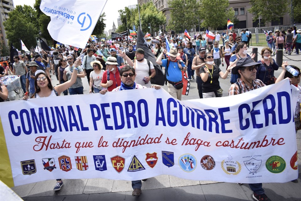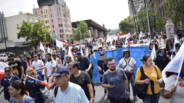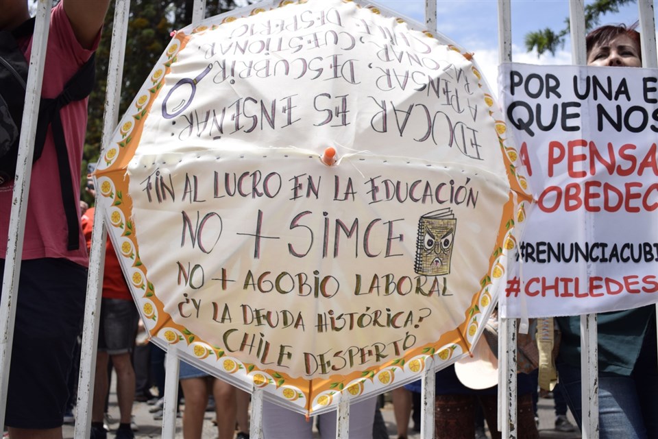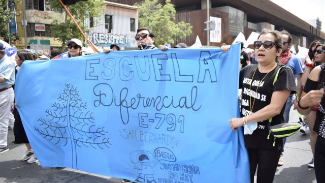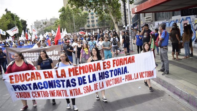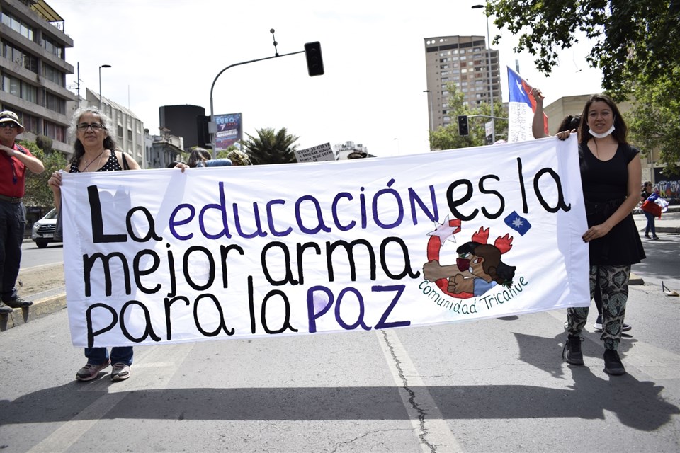 Miles de profesores y empleados públicos coparon la principal avenida de la capital en rechazo a la aplicación de pruebas estandarizadas en la educación y en demanda de los cambios sociales profundos que exige la ciudadanía movilizada en todo el país.