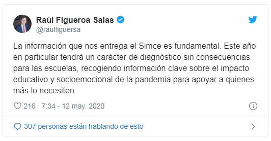 Según informó el ministro de Educación, Raúl Figueroa la prueba Simce 2020 se realizará pese a la pandemia del coronavirus. A través de un tweet, la autoridad declaró que los resultados de esta prueba tendrán “un carácter de diagnóstico sin consecuencias para las escuelas”.
